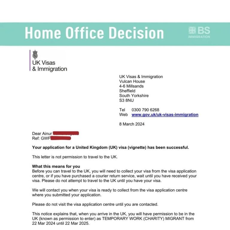 We applied for Ainur’s Charity Worker Visa of on February 28, 2024, and she received a visa on March 8, 2024.