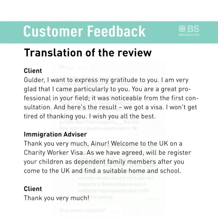 Taking into account Ainur’s situation, moving to the UK is not an easy task. But we wrote an immigration plan for her.